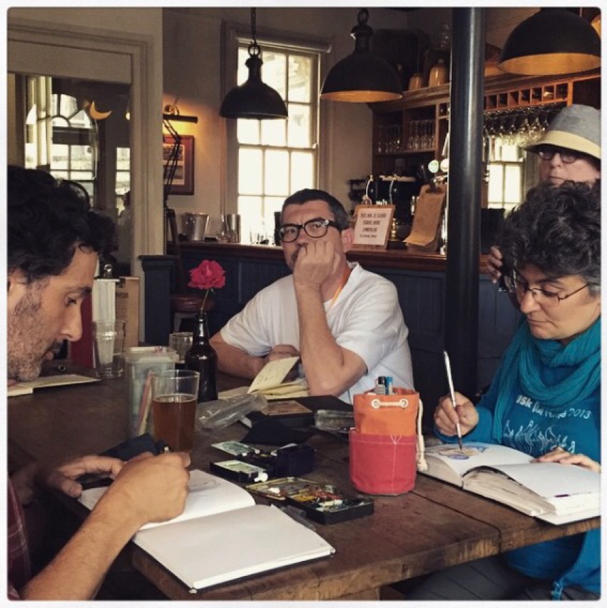 Swasky focused on people and stories: Drawing people is probably one of the most scary subjects when we are practicing drawing. Nevertheless if we want to get a full idea, or a least a really interesting drawing, we have to pay attention to people. We have to face them being reckless and working in a three days workshop is the best way to get over all our fears drawing people. Of course we worked drawing life, we went to the Covered Market St and we paid attention to all the stories that people might tell to us and we might draw.