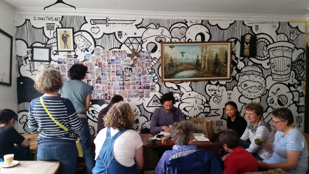 Our venue was the quirky Marwood Cafe where we grew an exhibition on their upstairs lounge wall for the duration of the workshop.