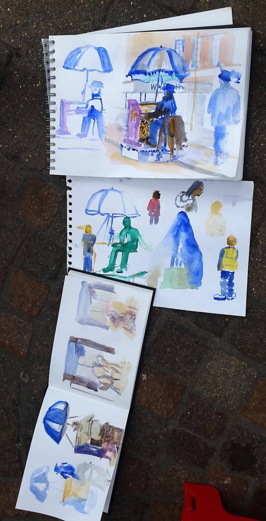 We shared the exhibition of our sketches and the sketchbooks at City Arts Newbury on a glorious sunny Easter Friday with locals for a final sketch meet and welcomed Coventry and Birmingham friends to join us.