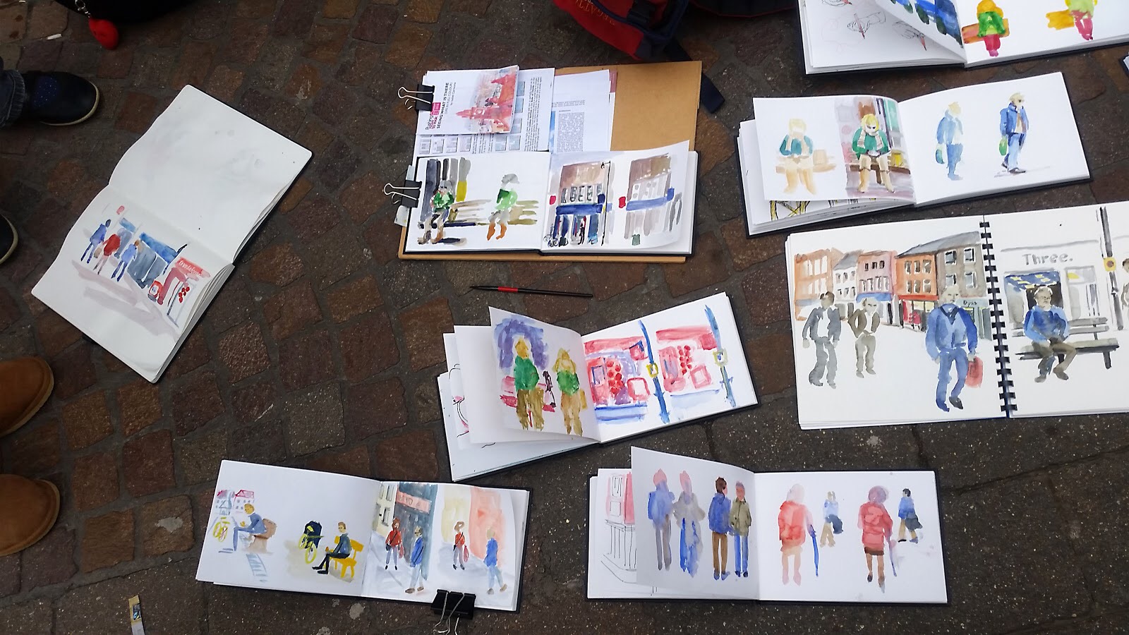 We shared the exhibition of our sketches and the sketchbooks at City Arts Newbury on a glorious sunny Easter Friday with locals for a final sketch meet and welcomed Coventry and Birmingham friends to join us.