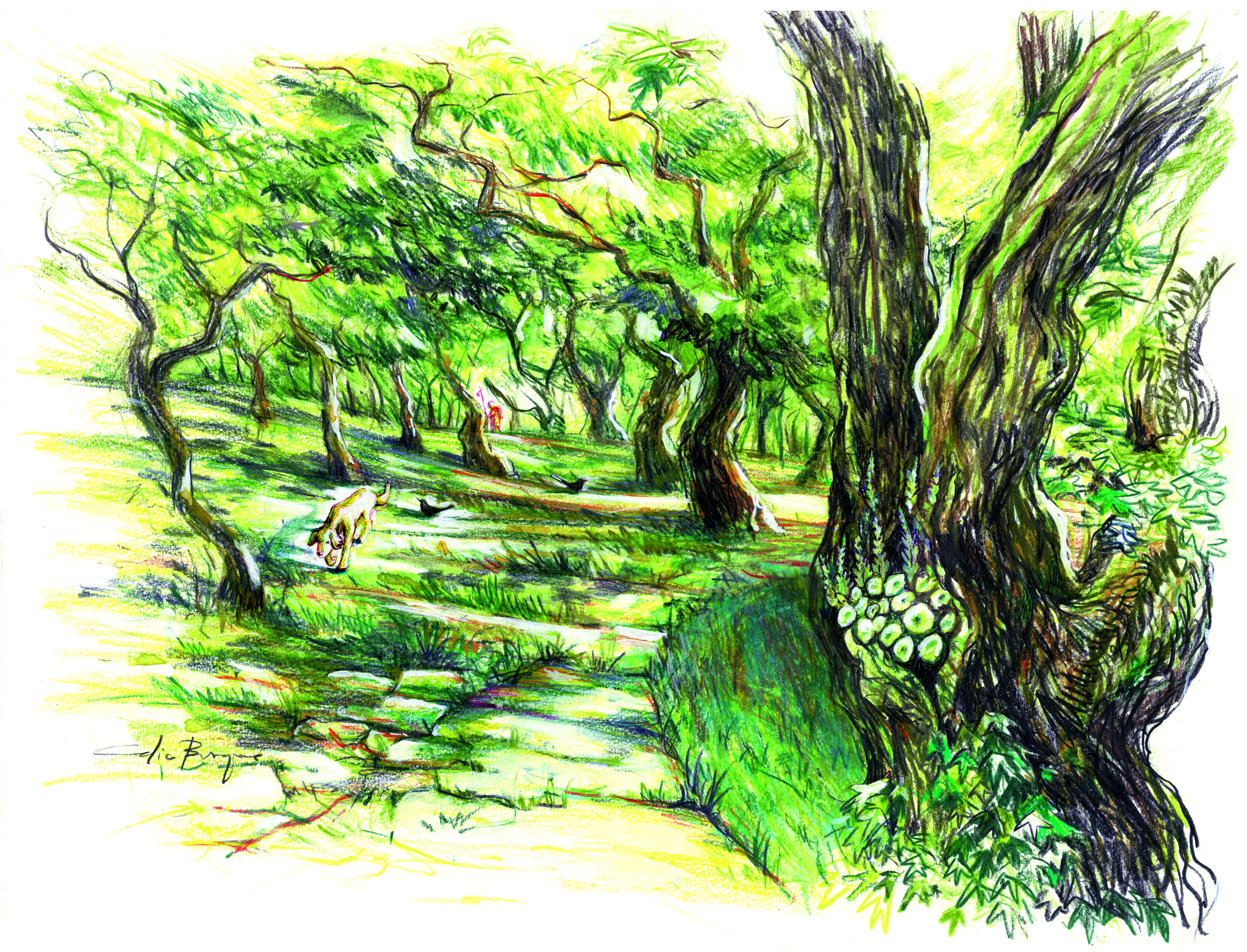 We will practice mixing greens and enjoying the diversity marks that suit each of the park spaces, sometimes looking for masses of green, sometimes for layered textures, looking for a personal expression on our work.