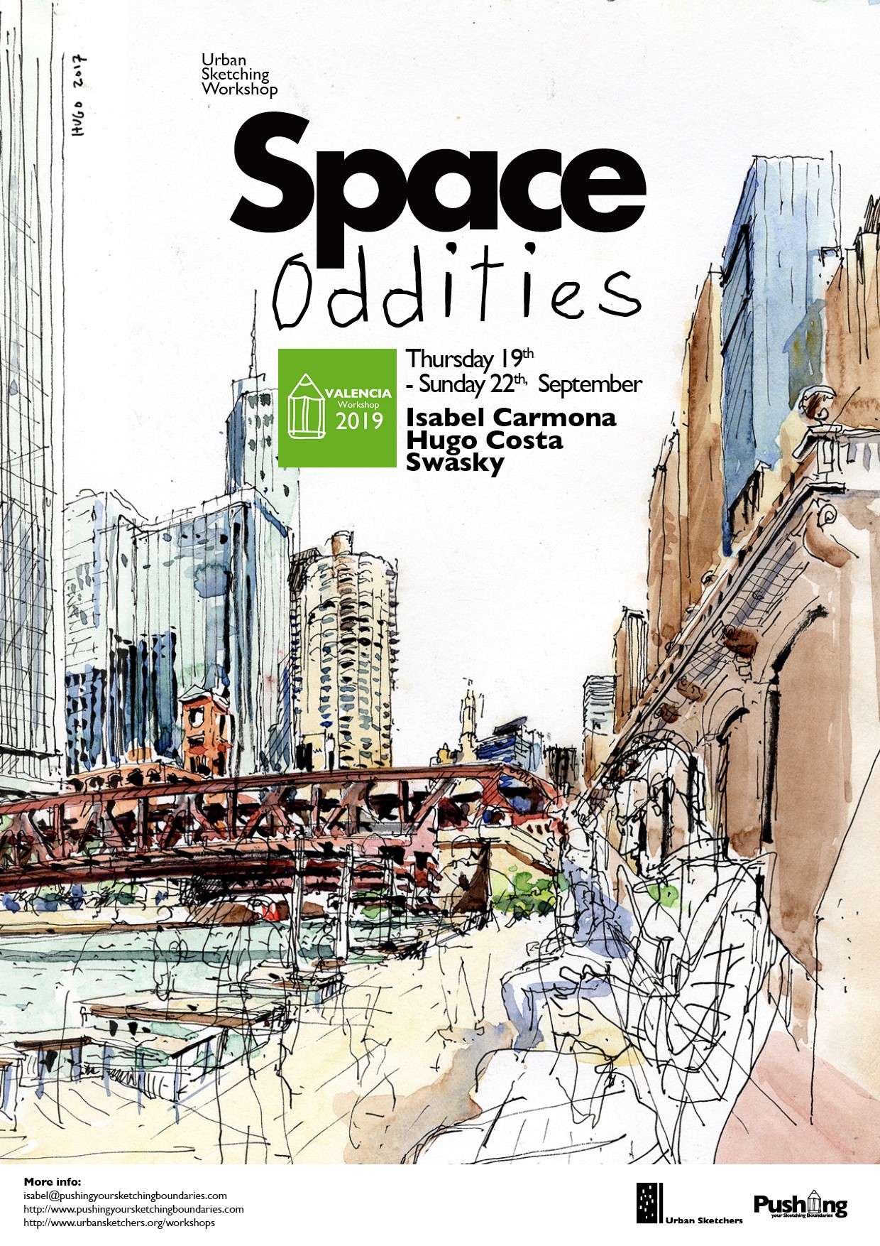 Join Urban Sketchers Isabel Carmona, Swasky and Hugo Costa for 3 full day workshop that will get you to know Valencia intimately and to develop your personal urban sketching techniques.