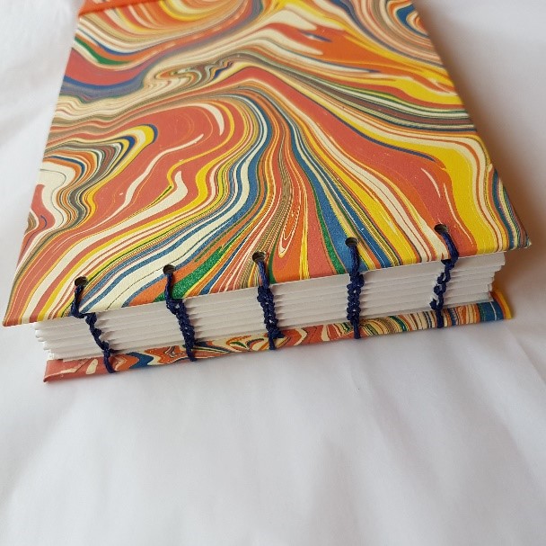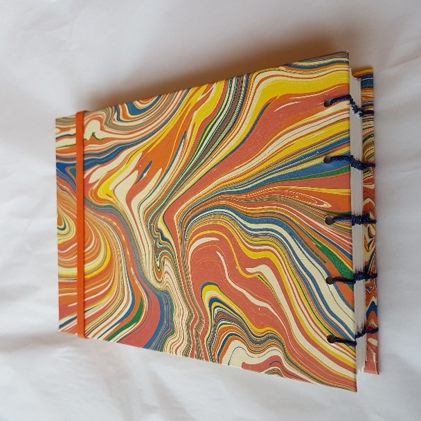 On Saturday. We will each make at least one Sketchbook from scratch using watercolour paper, line the covers with recycled wallpaper paper (there will be options to choose from), sew it together using the Coptic binding method that allows the pages to open fully when sketching.