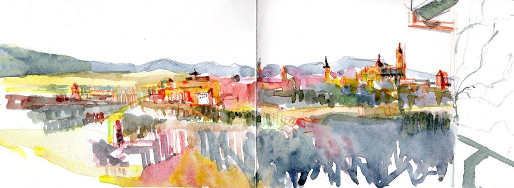 On Sunday. We will explore Potsdam with our sketchbooks spending the morning in Babelsberg Park and the afternoon near Brandenburger Tor around Park Sanssouci. An intense day collecting views in watercolour and learning to mix the colours of nature and the buildings we encounter, recording the details that interest us and wider views that evoke the atmosphere of this city. We will work in watercolour directly without drawing previously and work in layers to attain a painterly depiction of what we see and observe. Enjoy letting the colour and brushstrokes bring out the shapes of what’s in front of you come out on the page.