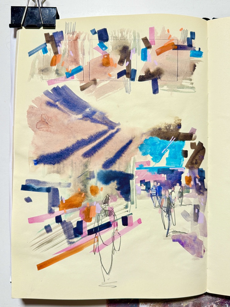 It is easy to be overwhelmed by a city space, but there is no need. In this session we will immerse ourselves in the places we visit and work fast (and furious!) using colour shapes boldly, to help us understand what is happening in front of us.