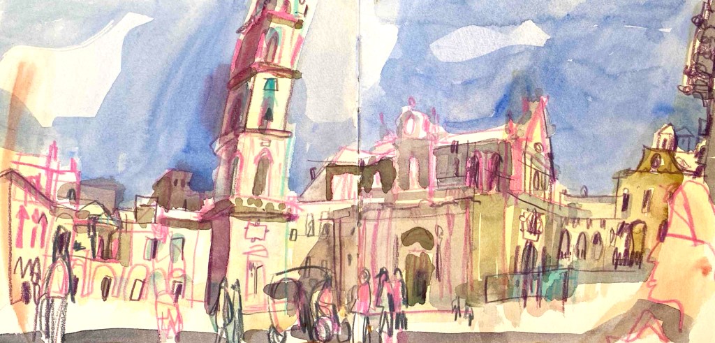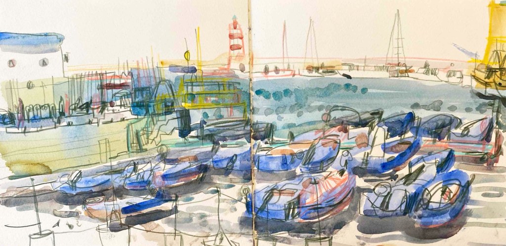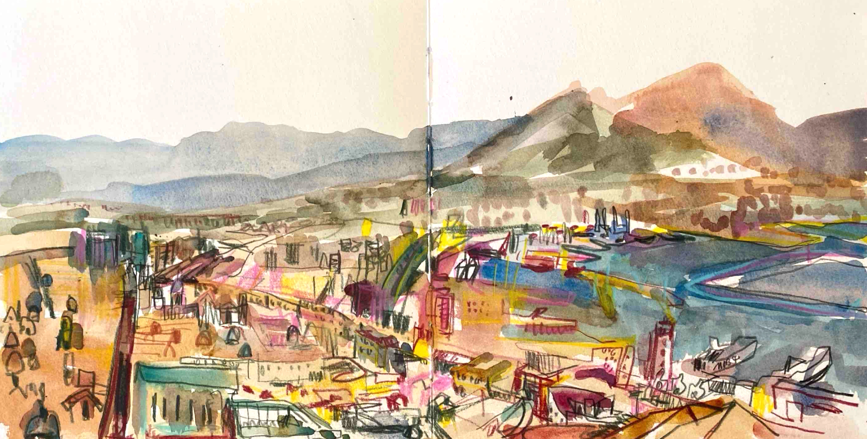 Isabel invites you to see the places we visit in colour, understand light and quickly capture the spirit of a place. You will learn to not be shy with your watercolour marks and overlap them to add meaning, depth and detail.