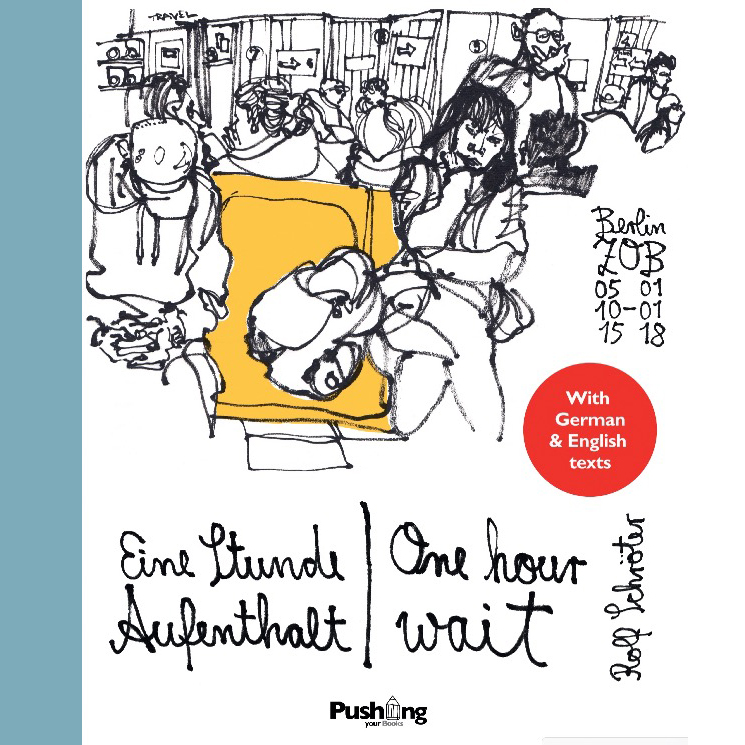 Here you can order Rolf Schroeter’s book Ein Stunde Aufenthalt / One Hour Wait. This book collects Rolf’s drawings of ZOB, Berlin’s Main Bus station, carried out over more than two years . The stories are sometimes sad, sometimes funny, always human, in his unmistakable brush pen strokes.